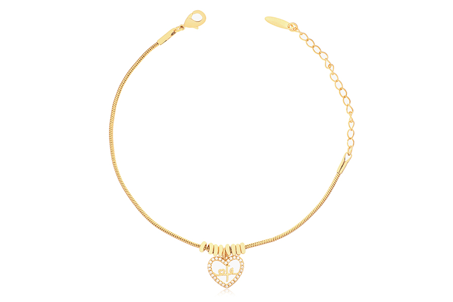 PULSEIRA BANHADA EM OURO, ELO PORTUGUÊS 3mm, ELO CORAÇÃO 4,20mm LARGURA, PINGENTE CORAÇÃO 11mm LARGURA COM MENINA