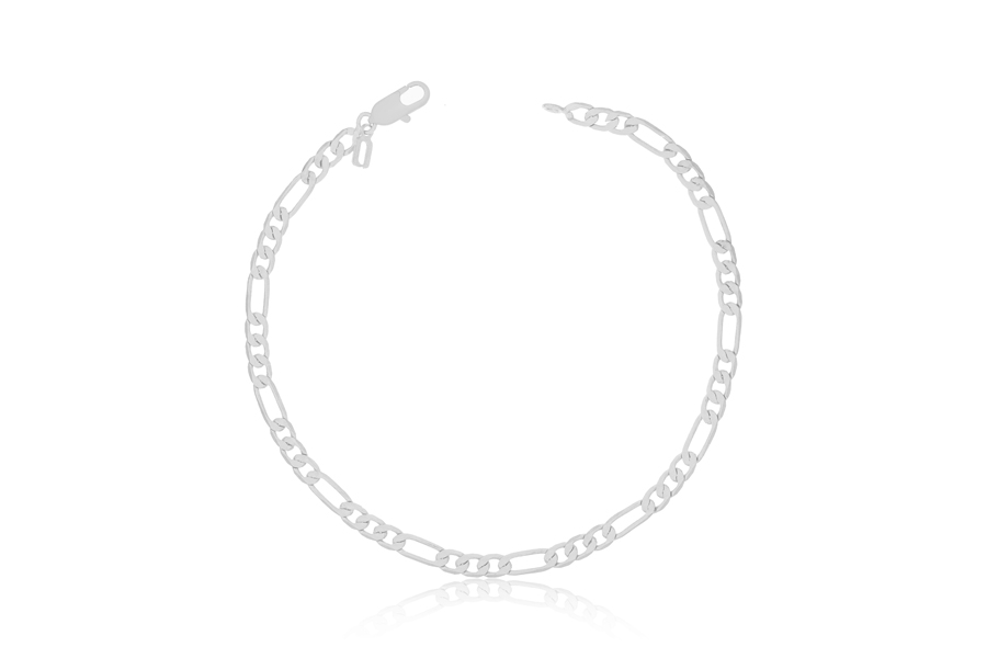 PULSEIRA BANHADA EM RÓDIO BRANCO, CORRENTE ELO QUADRADO 2,50mm, 18cm COMPRIMENTO, EXTENSOR 5cm COMPRIMENTO E PESO 7,60g