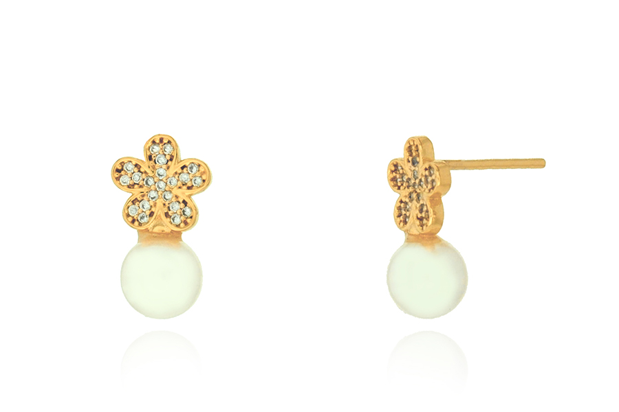 BRINCO BANHADO EM OURO, ZIRCÔNIA 3mm E PÉROLA 4,50mm LARGURA