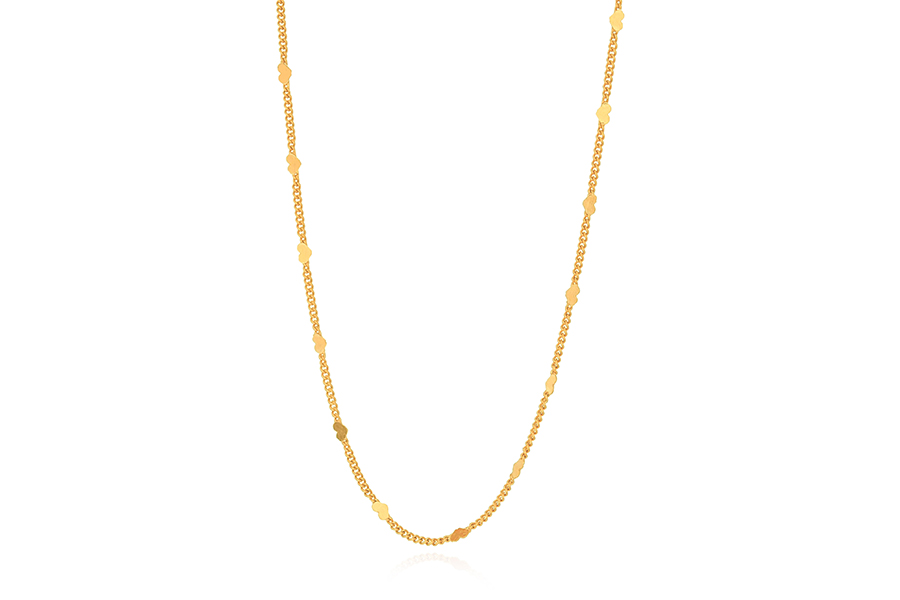 GARGANTILHA BANHADA EM OURO, ELO VENEZIANA 0,80mm, 40cm COMPRIMENTO, EXTENSOR 5cm COMPRIMENTO E TREVO 9mm LARGURA, COLEÇÃO ÍCONES