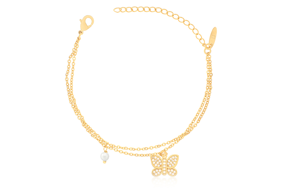PULSEIRA BANHADA EM OURO, ELO 4mm LARGURA, PIMENTA, CORAÇÃO, CRUZ, OLHO GREGO E PONTO DE LUZ