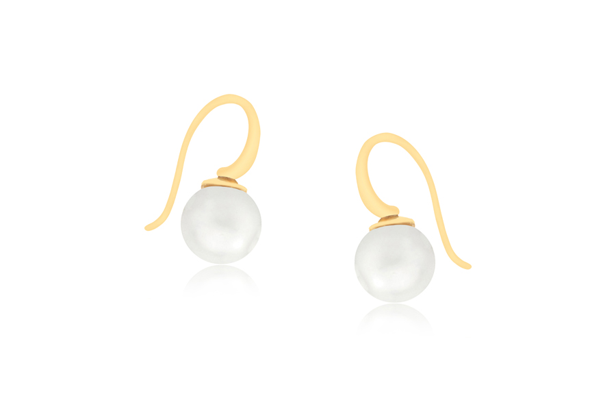 BRINCO BANHADO EM OURO, PÉROLA SHELL 10mm, LINHA TRADICIONAL