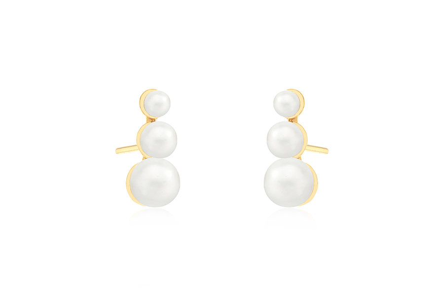 BRINCO BANHADO EM OURO, PÉROLA SHELL PÃO 6mm