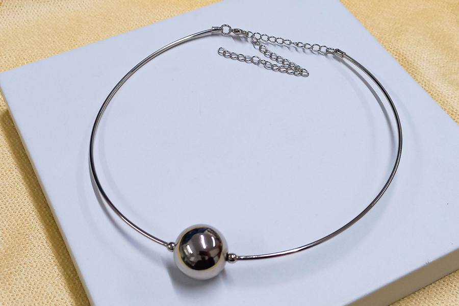 CHOKER BANHADA EM PRATA LEVE, ELO 3,80mm LARGURA, 30cm COMPRIMENTO E PONTO DE LUZ 6mm