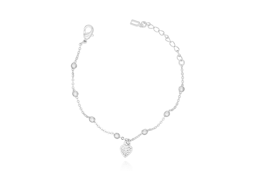 PULSEIRA BANHADA EM PRATA LEVE, ELO PORTUGUÊS 5mm DIÂMETRO E CORAÇÃO COM FORRO 11,50mm LARGURA