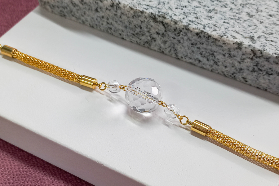 PULSEIRA BANHADA EM OURO, OLHO GREGO 11mm DIÂMETRO, QUALQUER COR, ELO VENEZIANA 0,80mm, LINHA TRADICIONAL