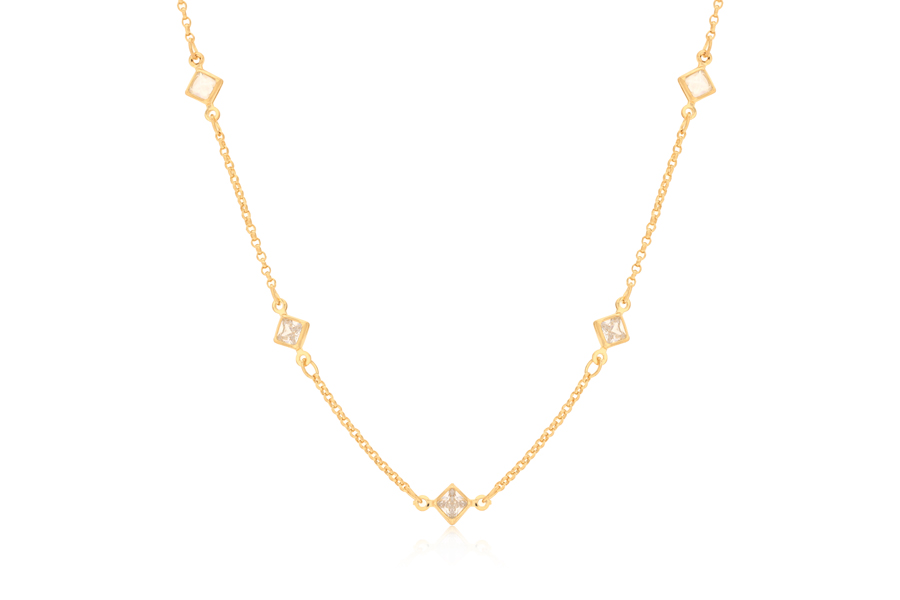 GARGANTILHA BANHADA EM OURO, VENEZIANA 0,80mm, 40cm COMPRIMENTO E ZIRCÔNIA REDONDA 3mm, PARA QUALQUER COR DE PEDRA