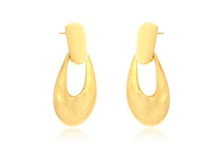 BRINCO BANHADO EM OURO, DUAS NAVETES TORCIDAS 32x11mm, LISO OU ACETINADO, PROVIN OPAC
