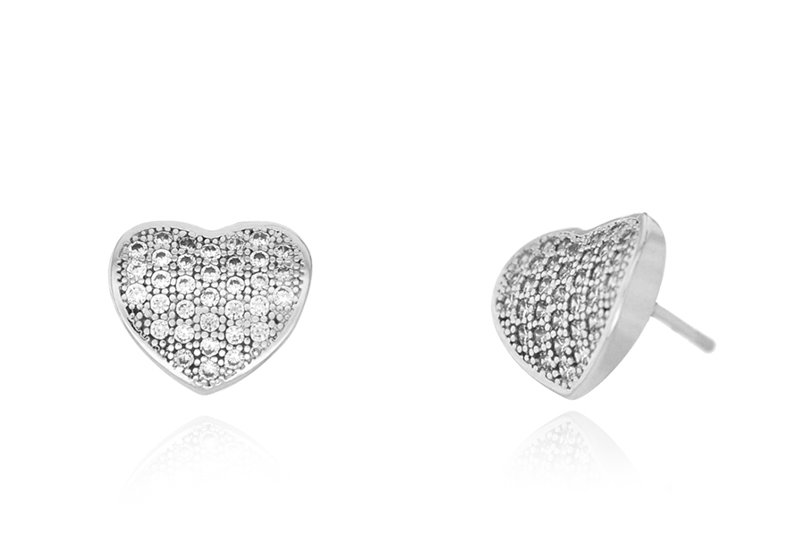 BRINCO EM PRATA, PONTO DE LUZ CORAÇÃO 4mm ALTURA