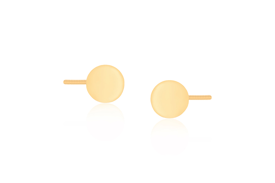 BRINCO BANHADO EM OURO, PIZZA 14mm DE DIÂMETRO, PARA ZIRCÔNIA BRANCA OU COLORIDA
