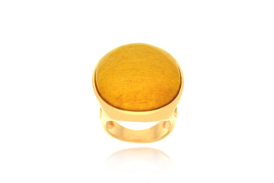 ANEL BANHADO EM OURO, TORCIDO, COM RESINA COLORIDA