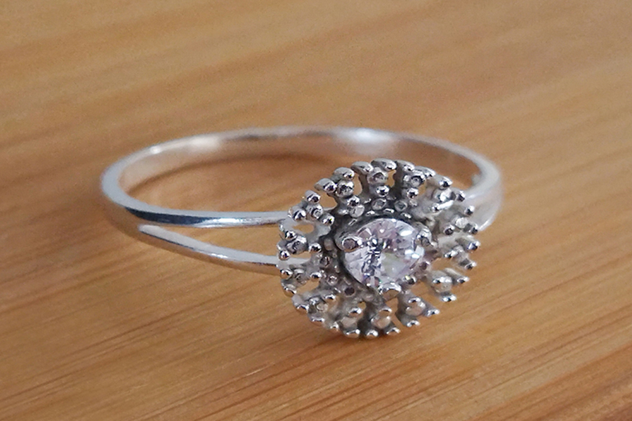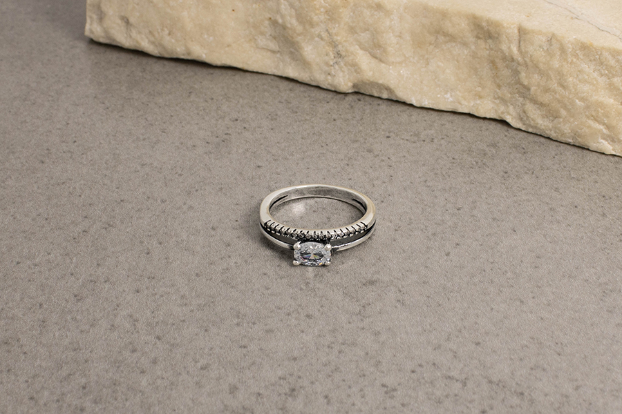 ANEL EM PRATA, SOLITÁRIO REDONDO 3mm DIÂMETRO, ARO COM 4 ZIRCÔNIAS