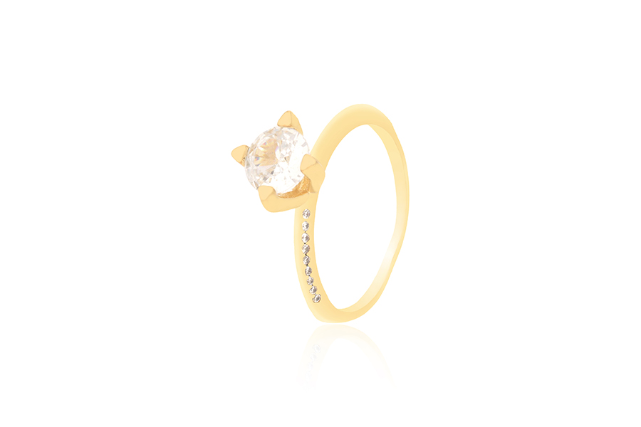 ANEL BANHADO EM OURO, SOLITÁRIO 5mm COM 22 ZIRCÔNIAS
