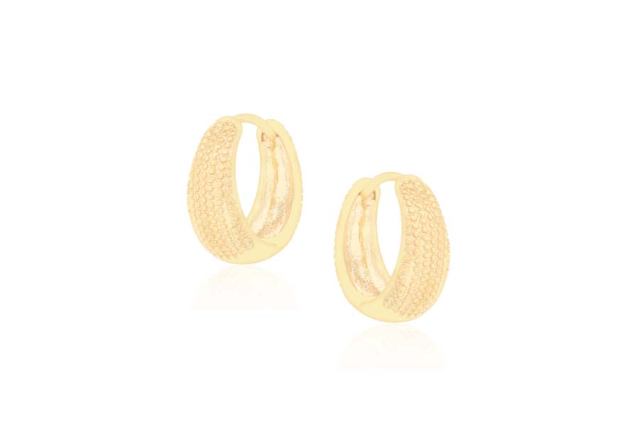 BRINCO BANHADO EM OURO, MEIA ARGOLA, 16mm ALTURA E 10,50mm LARGURA, LISO OU ACETINADO