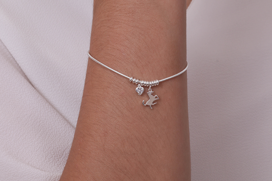 PULSEIRA BANHADA EM OURO, ELO PORTUGUÊS 3mm DIÂMETRO, CORAÇÃO 7mm LARGURA E GATO 16mm ALTURA