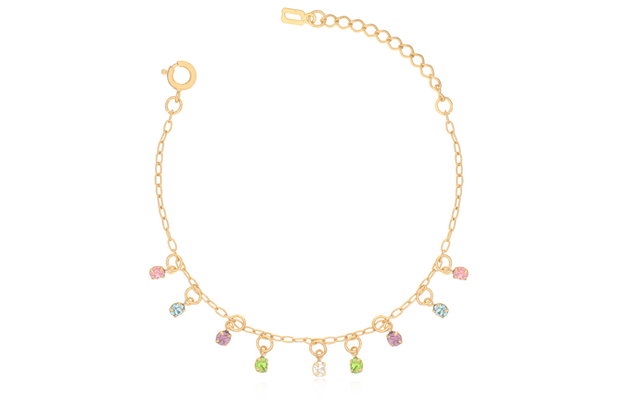 PULSEIRA BANHADA EM OURO, CRISTAL GOTA 14X10mm, ELO CARTIER 6,90X2,70mm, 16cm COMPRIMENTO, COLEÇÃO PINK