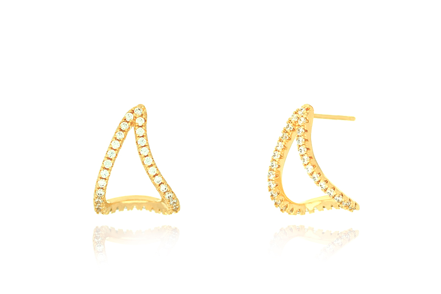 BRINCO BANHADO EM OURO, 50mm ALTURA, 6 ZIRCÔNIAS TRIÂNGULO 8mm LARGURA