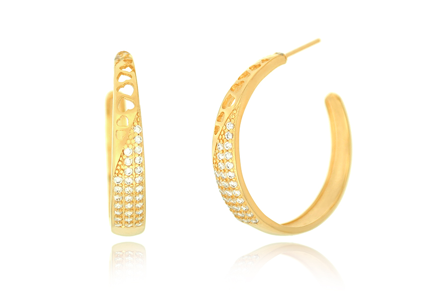 BRINCO EM PRATA, CORAÇÃO VAZADO MEIO CRAVEJADO 7mm LARGURA