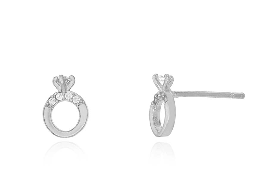 BRINCO BANHADO EM RÓDIO BRANCO, PONTO DE LUZ 5mm, CRAVAÇÃO INGLESA