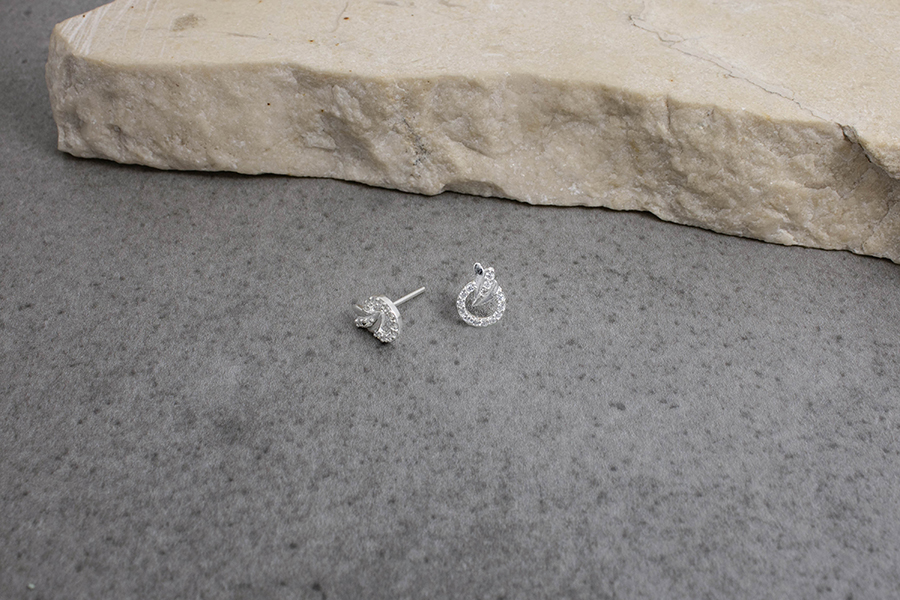 BRINCO EM PRATA, LAÇO MEIO CRAVEJADO