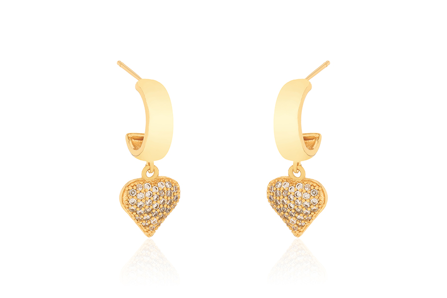 BRINCO BANHADO EM OURO, CORAÇÃO ZIRCÔNIA 4X4mm, PARA QUALQUER COR DE PEDRA
