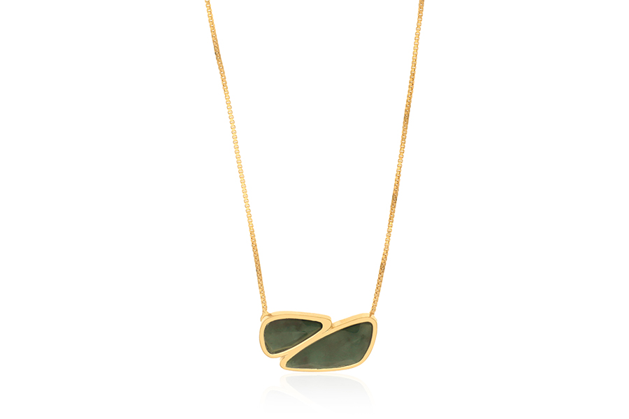 GARGANTILHA BANHADA EM OURO, TRIÂNGULO, 36mm ALTURA E 16,50mm LARGURA E ZIRCÔNIA 7mm DIÂMETRO, PARA QUALQUER COR DE PEDRA