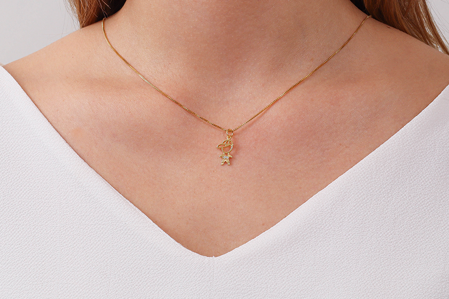 PINGENTE BANHADO EM OURO, MENINO, COM 2 ZIRCONIAS E 16mm ALTURA