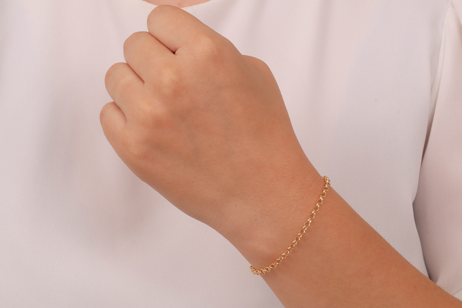 PULSEIRA BANHADA EM OURO, CORRENTE ELO PORTUGUÊS 2,50mm, 17cm COMPRIMENTO, EXTENSOR 5cm COMPRIMENTO E PESO 2,20g
