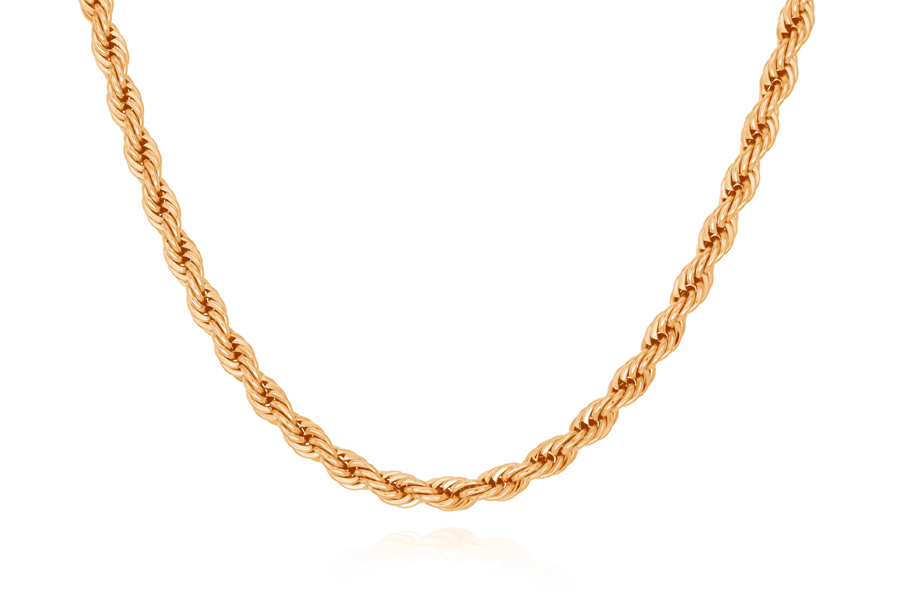 CORRENTE BANHADA EM OURO, ELO CORDA 3mm, 45cm COMPRIMENTO, EXTENSOR 5cm COMPRIMENTO E PESO 12,20g