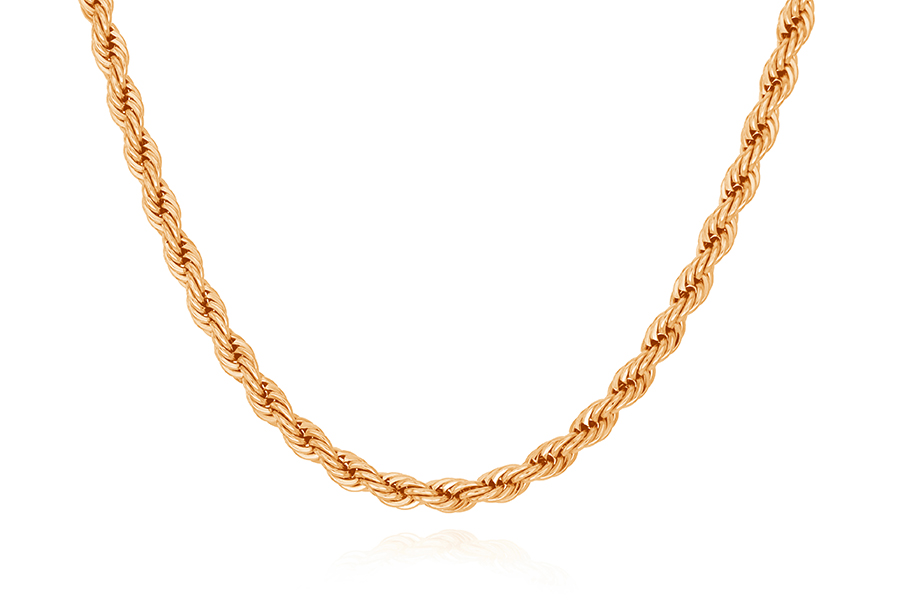 CORRENTE BANHADA EM OURO, ELO CORDA 3mm, 45cm COMPRIMENTO, EXTENSOR 5cm COMPRIMENTO E PESO 12,20g