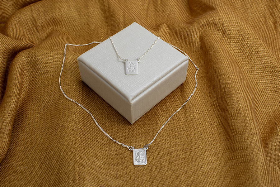 ESCAPULÁRIO EM PRATA, SAGRADO CORAÇÃO DE JESUS E NOSSA SENHORA DO CARMO RETANGULAR 6mm LARGURA, 65cm COMPRIMENTO
