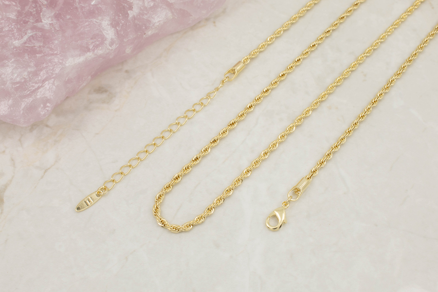 CORRENTE BANHADA EM OURO, CORDA 2,50mm, 45cm COMPRIMENTO, EXTENSOR 5cm COMPRIMENTO E PESO 8,70g