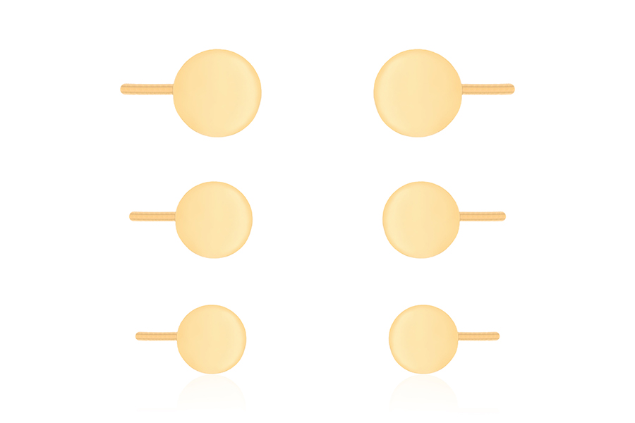 CONJUNTO BANHADO EM OURO, TRIO DE BRINCOS, PONTO DE LUZ 5, 4 E 3mm, CRAVAÇÃO INGLESA