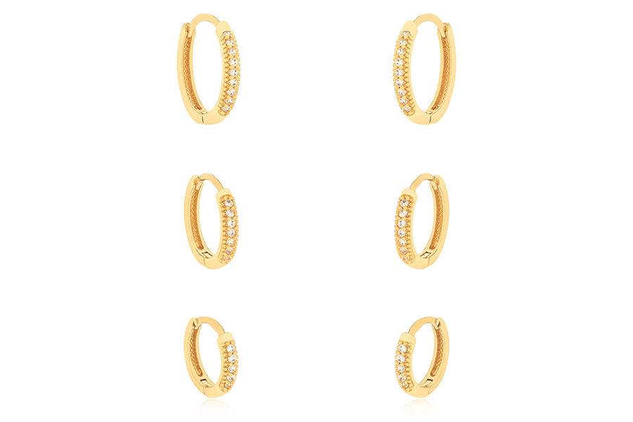 BRINCO BANHADO EM OURO, 21mm ALTURA COM 54 ZIRCÔNIAS