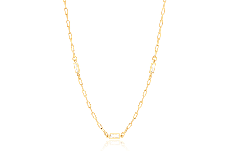 GARGANTILHA BANHADA EM OURO, VENEZIANA 0,80mm, 40cm COMPRIMENTO E ZIRCÔNIA QUADRADA 8mm, PARA QUALQUER COR DE PEDRA