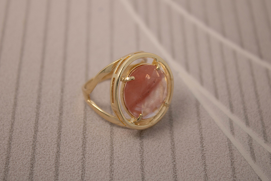ANEL BANHADO EM OURO, TORCIDO, COM RESINA COLORIDA
