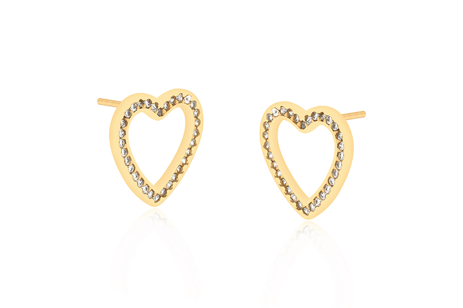 BRINCO BANHADO EM OURO, CORAÇÃO ZIRCÔNIA 6X6mm, PARA QUALQUER COR DE PEDRA