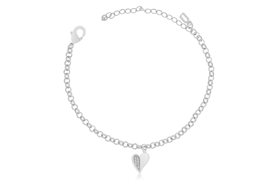 PULSEIRA BANHADA EM PRATA LEVE, ELO PORTUGUÊS 3mm DIÂMETRO E CORAÇÃO 10,50mm LARGURA COM FORRO E 20 ZIRCÔNIAS