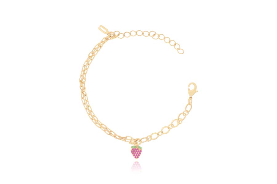 PULSEIRA BANHADA EM OURO, ELO PORTUGUÊS 3mm, ELO CORAÇÃO 4,20mm LARGURA, PINGENTE CORAÇÃO 11mm LARGURA COM MENINA