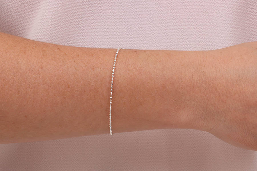 PULSEIRA EM PRATA, CORRENTE ELO ESFERAS 1,40mm DIÂMETRO, 18cm COMPRIMENTO