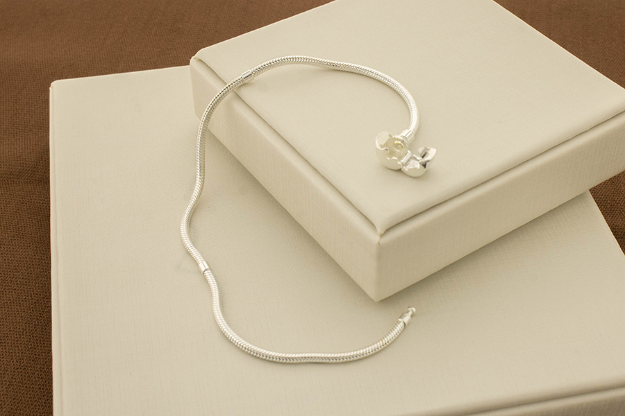 PULSEIRA EM PRATA, PULSEIRA PARA BERLOQUES, FECHO CORAÇÃO CRAVEJADO, 20cm