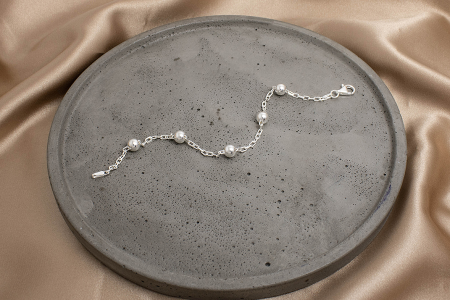 PULSEIRA EM PRATA, CORRENTE ELO ESFERAS 1,40mm DIÂMETRO, 18cm COMPRIMENTO