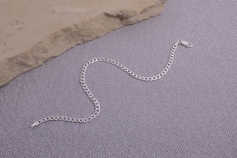 PULSEIRA EM PRATA, CORRENTE ELO GRUMET 3x1 3,20mm LARGURA E 0,80mm ESPESSURA, 21cm COMPRIMENTO