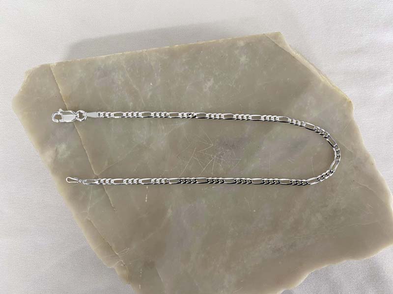 PULSEIRA EM PRATA, CORRENTE ELO GRUMET 3x1 2,10mm LARGURA E 0,60mm ESPESSURA, 19cm COMPRIMENTO