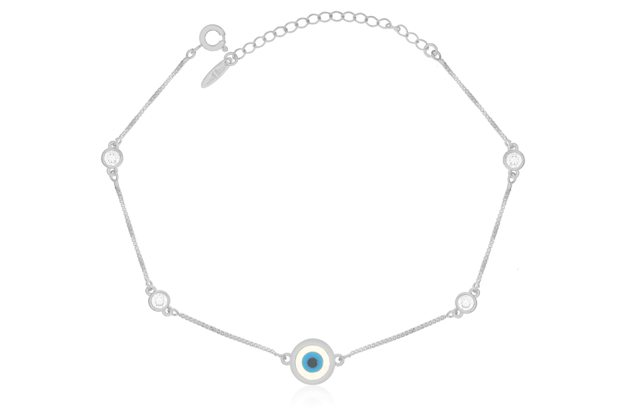 PULSEIRA BANHADA EM OURO, OLHO GREGO 11mm DIÂMETRO, QUALQUER COR, ELO VENEZIANA 0,80mm, LINHA TRADICIONAL