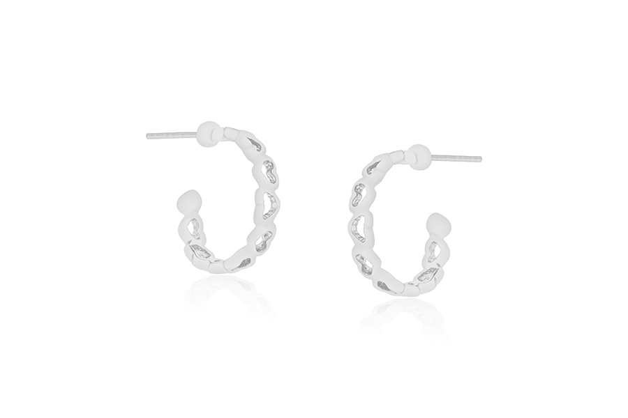 BRINCO BANHADO EM PRATA LEVE, ARGOLINHA 12,50mm DIÂMETRO E CORAÇÃO