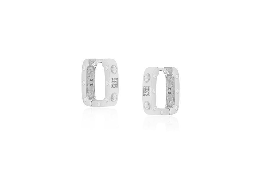 BRINCO EM PRATA, PONTO DE LUZ QUADRADO 7mm ALTURA