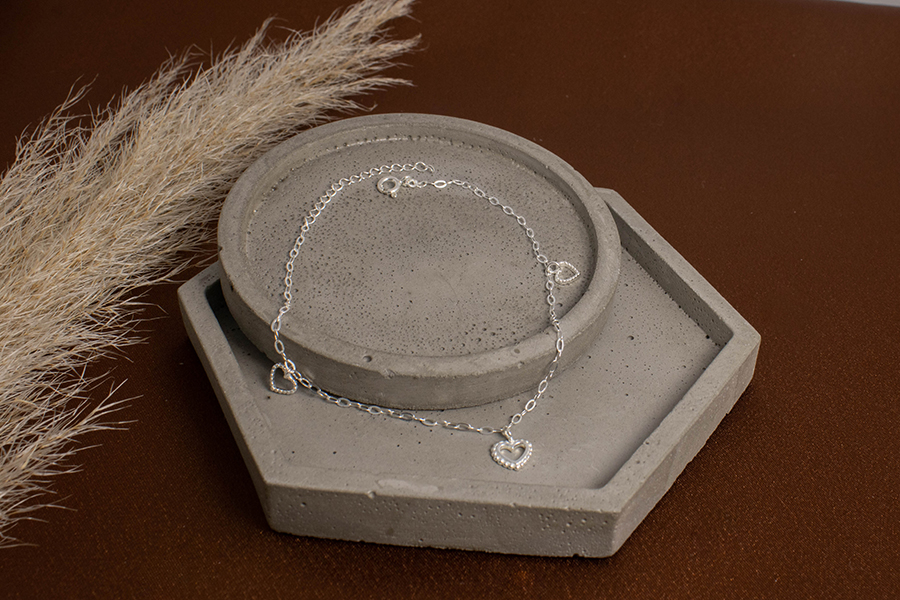 PULSEIRA BANHADA EM OURO, ELO PORTUGUÊS 3mm DIÂMETRO, CORAÇÃO 7mm LARGURA E GATO 16mm ALTURA