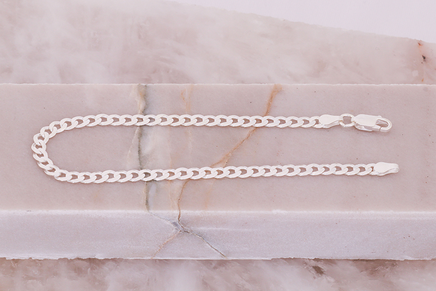 PULSEIRA BANHADA EM PRATA LEVE, CORRENTE ELO CARTIER 8,50x3,30mm, 19cm E 20cm COMPRIMENTO E PESO 3,30g