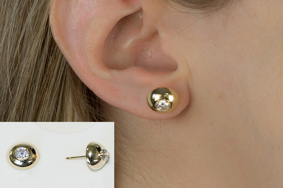 BRINCO BANHADO EM OURO, INFANTIL, PONTO DE LUZ 4,50mm DIÂMETRO, COM TARRAXA BABY